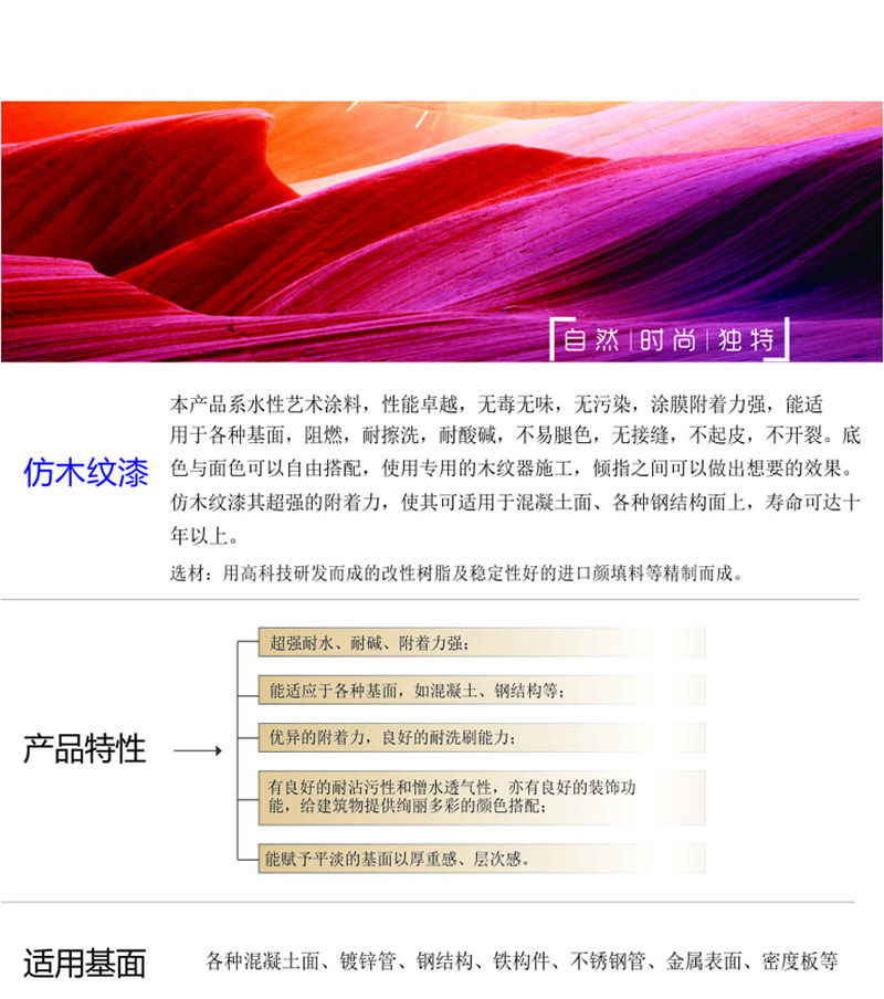 木紋漆特點:附著力佳,耐候性好,硬度高,漆膜平滑